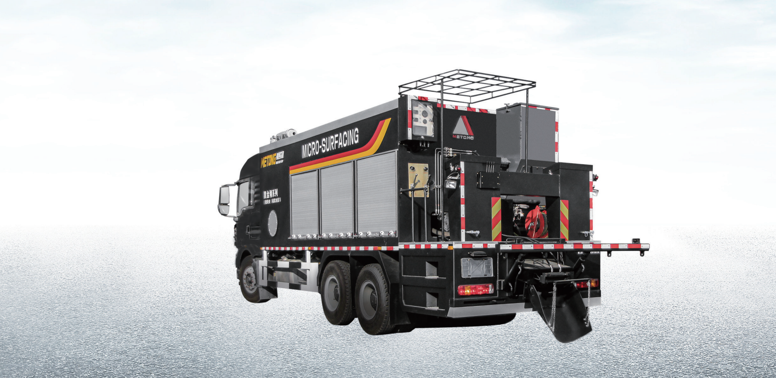 (微表处)稀浆封层车可拌和摊铺普通稀浆封层材料,也可拌和摊铺改性乳化沥青稀浆封层材料(微表处 Micro-Surfacing)。该车可用于各等级公路的预防性养护施工,施工效率高、施工效果好、节约养护成本。该车被广泛用于高等级公路、二、三级公路和市政道路的微表处和下封层施工,是同类产品中的高端产品。该车配置后端远程速度控制装置,使得施工更加流畅;乳化沥青箱及水箱均采用耐腐蚀复合材料处理,大大减小了水及乳化沥青对箱体的腐蚀,延长了使用寿命;采用集中控制,操作人员可以在后平台上完成所有操作,优选日本欧姆龙PLC,手动、自动切换,智能显示流量,操作方便、可调。