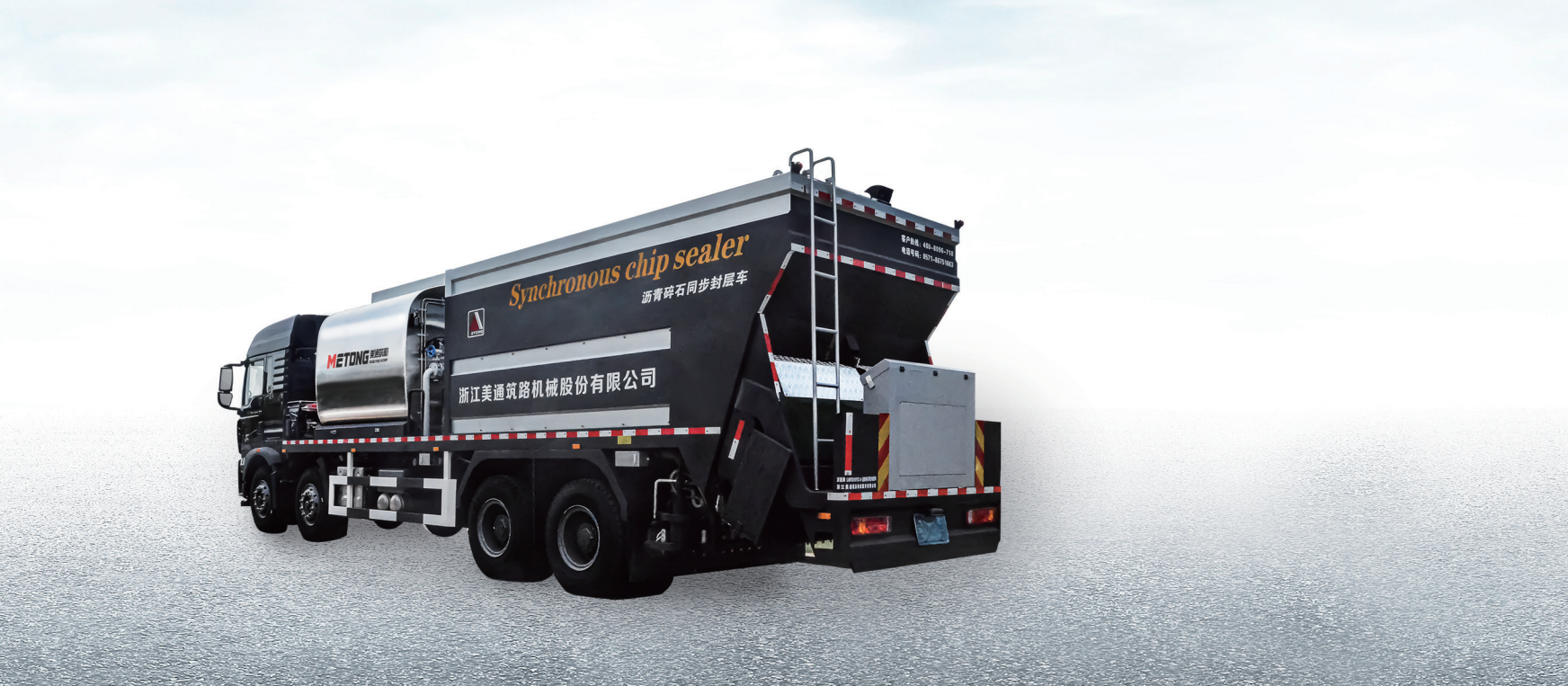 沥青碎石同步封层车广泛用于公路的沥青碎石同步封层作业。可实现在同一时间同步洒(撒)布沥青和骨料,也可分别洒(撒)布,适合不同等级的公路施工。该车施工效率高,洒(撒)布计量精准。同步封层施工后路面形成耐磨耗的粗糙纹理,可大大提高通行路面的抗滑性能,提高行车安全性。经过同步封层施工的路面耐磨性、防滑性、防水性更好,施工后能快速恢复交通。