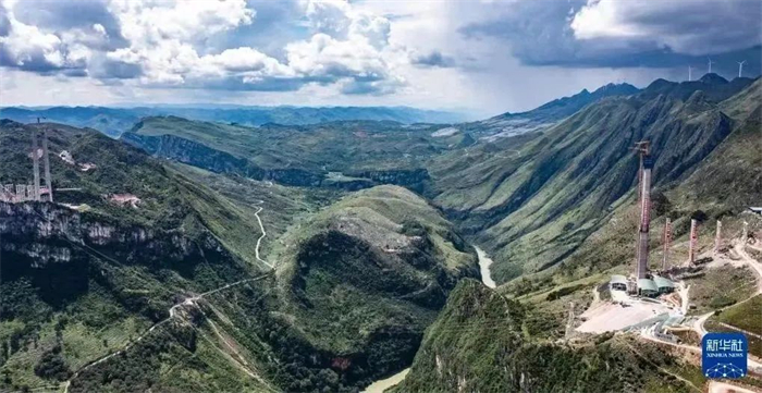 盛夏时节,贵州安顺市关岭布依族苗族自治县和黔西南布依族苗族自治州贞丰县的交界。草木苍翠 峰峦蜿蜒,花江峡谷大桥正在紧张有序建设中。