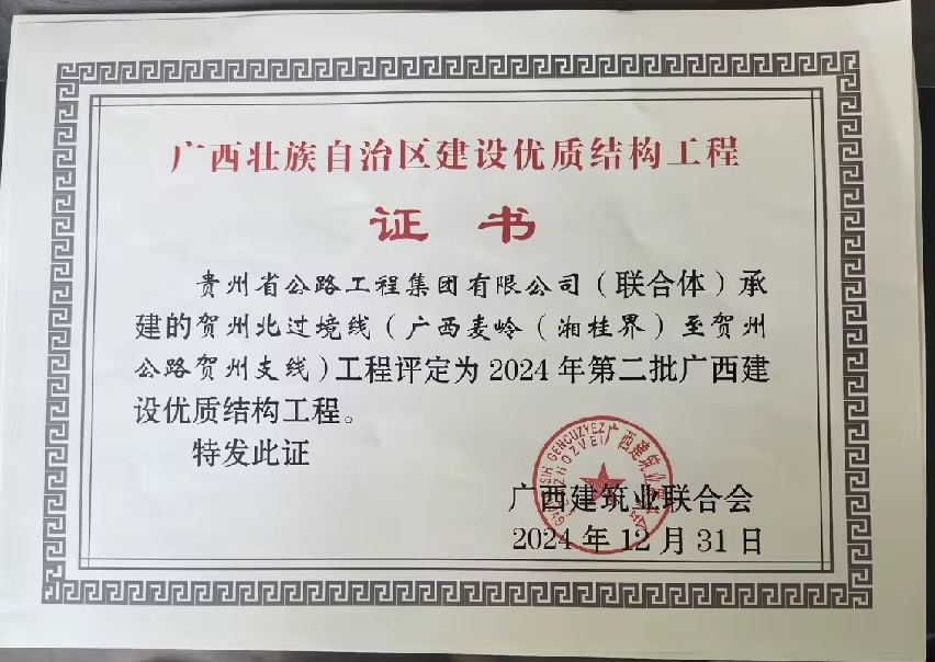 近日,广西建筑物联合会公布了2024年第二批广西建设优质结构工程以及2024年广西建筑业绿色施工工程名单,由贵州公路集团第六工程公司承建的广西贺州北过境线第2合同段(简称“贺州2标”)凭借良好的施工质量与绿色环保举措,成功入选。