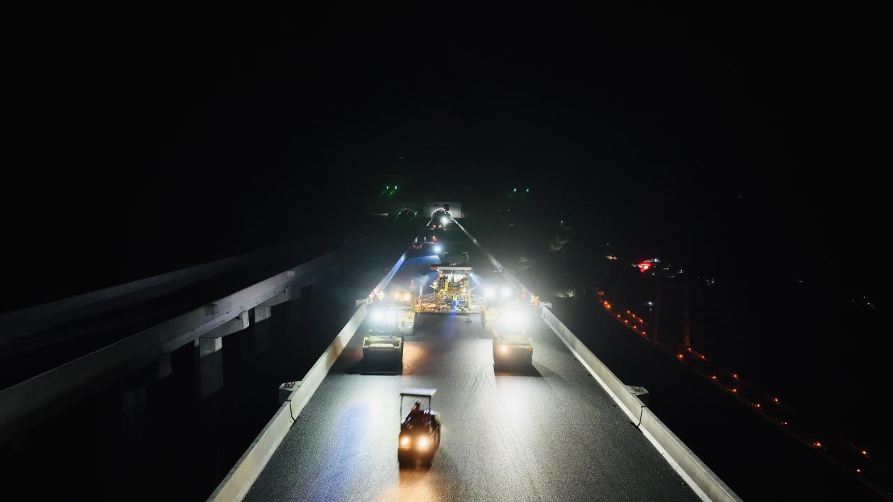 为确保优质高效完成沥青摊铺作业,纳晴路面3标提前谋划、精心组织,开启“白+黑”模式推进路面施工,对拌和工艺、运输流程、摊铺作业到碾压成型等工序进行深度优化,强化现场施工人员安全、技术交底,层层分解施工任务并跟踪落实。