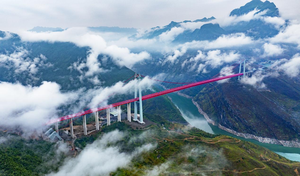 群山巍巍,牂牁江奔腾不息。由贵州公路集团第六工程公司承建的纳晴高速牂牁江大桥在高空云海中展现出最新模样。