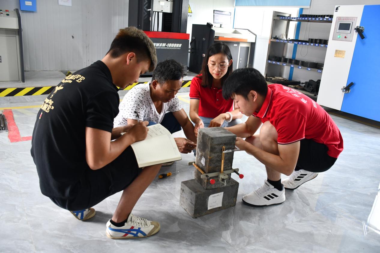 潘兴燕(右二)与同伴开展进行混凝土张弹性模量试验