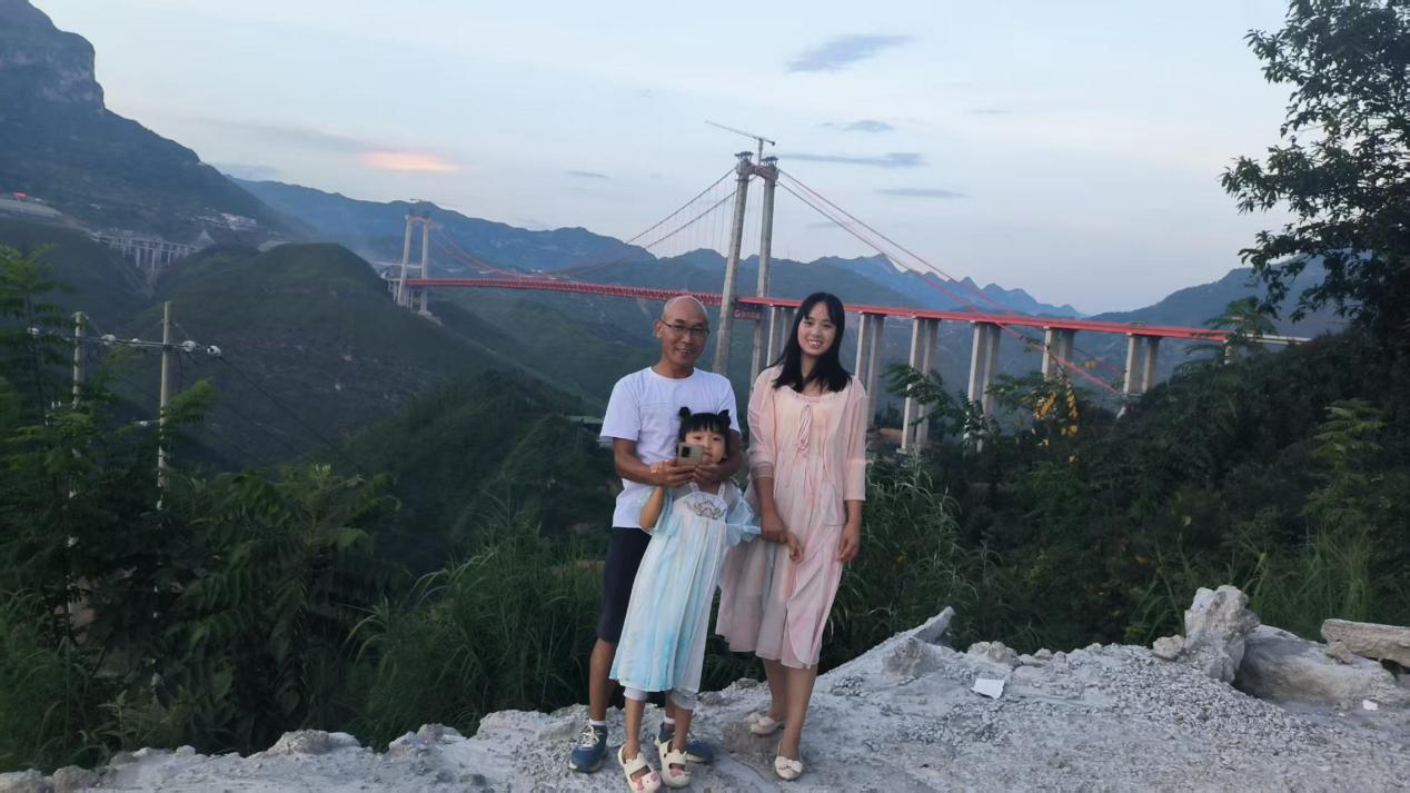 项目工地开放日,唐涛带着妻女到参建的牂牁江大桥打卡