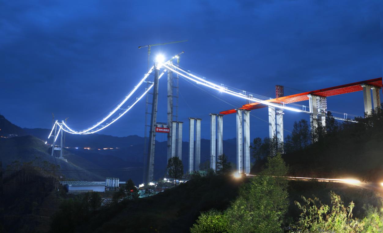 2023年夏,牂牁江大桥进行夜间主缆调索