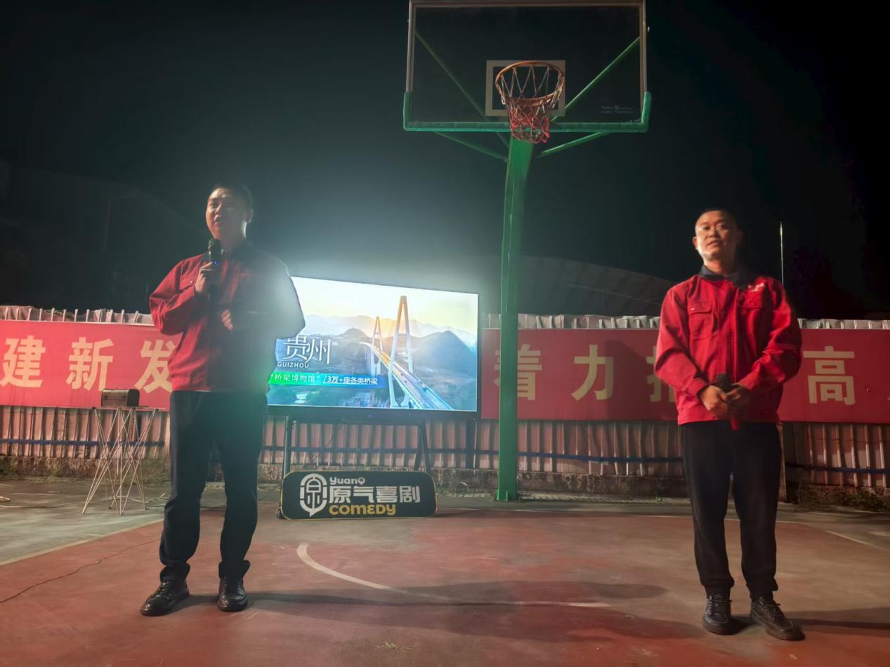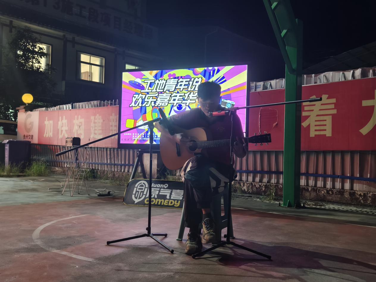 本场活动在建设者自己的故事中拉开帷幕。来自牂牁江大桥建设一线的何明华、王桥带来了原创“理论宣传二人讲”节目《华哥桥哥说牂牁 云端架桥越山河》,用朴实的语言,分享了大桥建设中的艰辛与荣耀,真挚的情感引发了全场同事的强烈共鸣。随后,来自贵阳元气脱口秀的专业演员们以“工地生活”为素材,将日常工作中的点滴趣事编成幽默段子,引得满堂欢笑,有效缓解了因工期紧张带来的压力。项目部青年职工也自告奋勇登台,一曲自弹自唱的民谣,展现了青春风采。