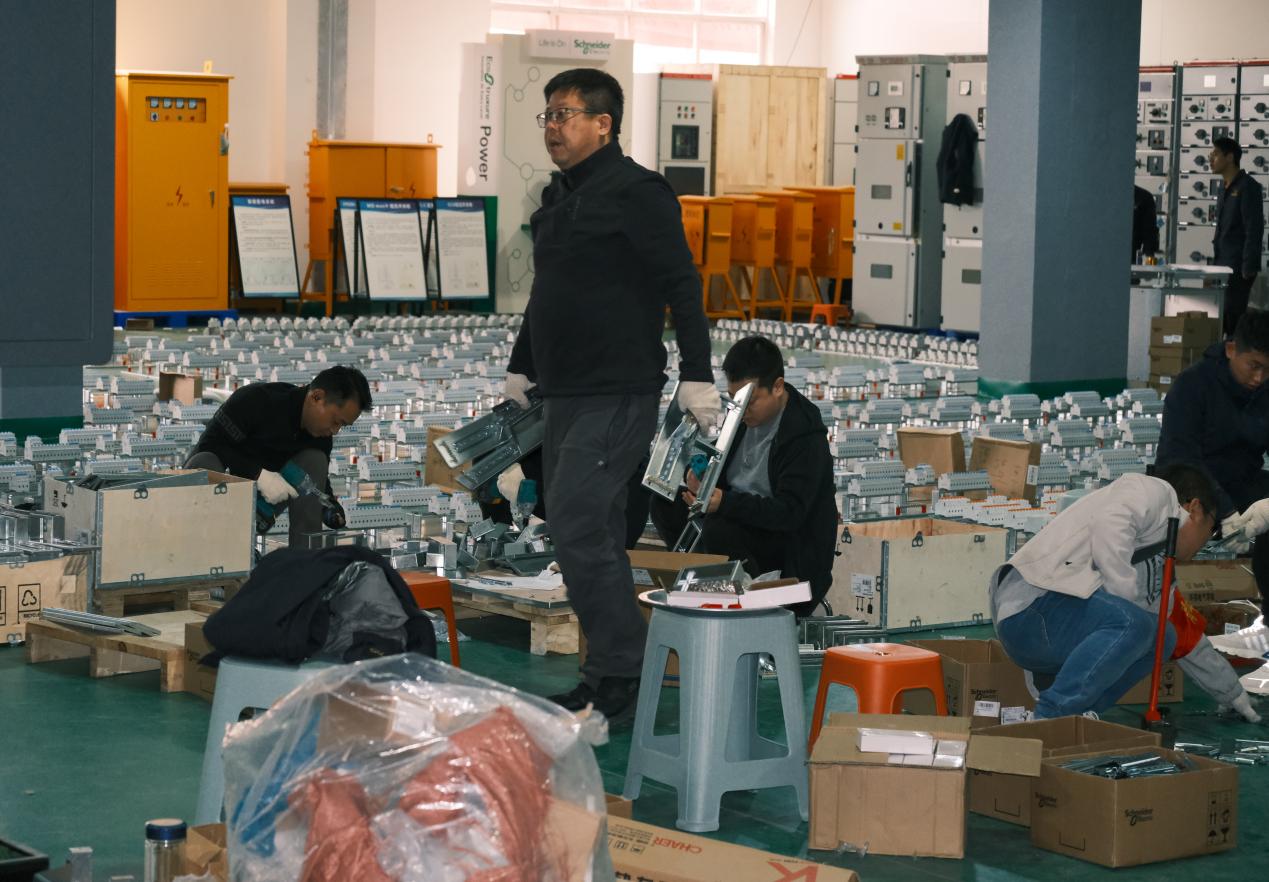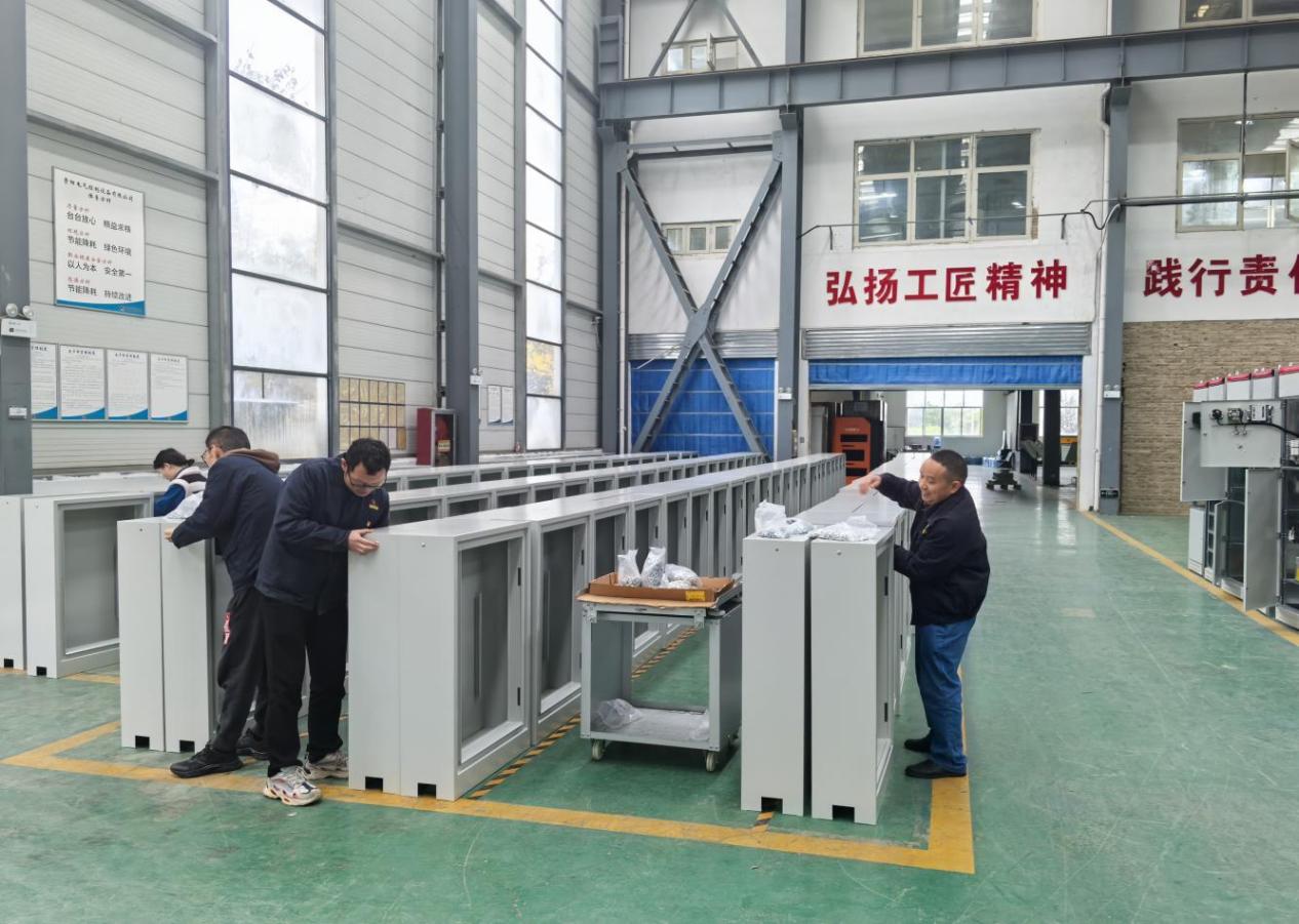 这场“保交付”攻坚,不只是生产部门的任务,更是全公司上下共同的战斗。除生产一线外,技术中心、营销部、物资保障部、质检部、党群工作部等近30名非生产人员也加入支援。物资保障部提前谋划、全程跟进,筑牢“粮草防线”;技术中心人员深入车间,协助安装调试;营销部员工也挽起袖子,参与到低压出线柜的组装中。