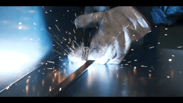 生产部焊接组师傅们手拿焊枪、火花迸发。