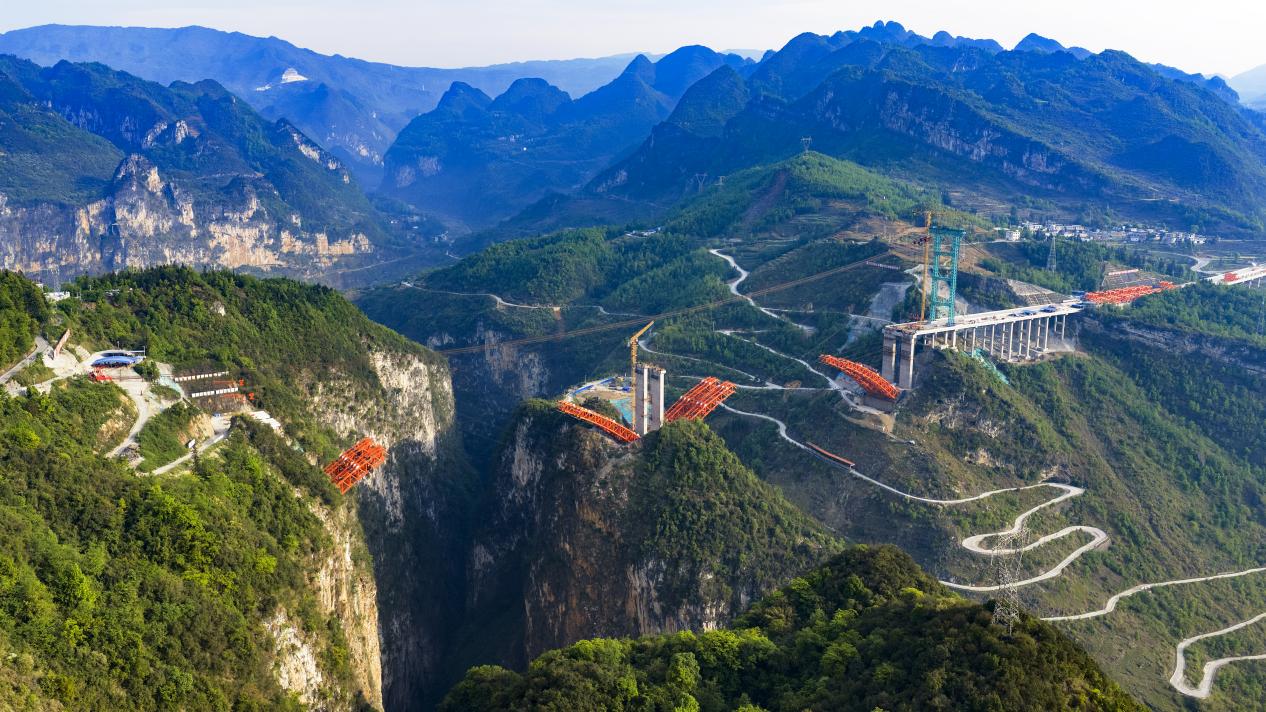 面对复杂地形、高空作业、高精度施工等多重考验,项目团队科学统筹、精准施策,不断优化、细化施工方案,加大资源设备投入。在主拱圈吊装施工中,采用全套智能监控系统和北斗定位系统,实现施工过程主动纠偏、自动化监测预警,为高空作业全方位安全护航。同时,不断强化现场质量安全管控,严把材料和工艺关,全面落实作业人员安全技术交底,常态化开展日常隐患排查与全过程施工监管,多措并举保障大桥建设平稳有序推进。