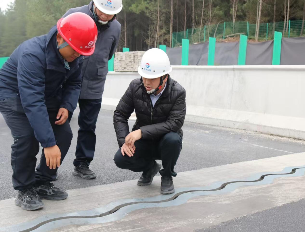 朱明聪深入施工一线,实地察看贵平路面2标伸缩缝、毕节南环6标六合支线隧道等施工情况,详细了解项目进展、安全防护、质量管控等工作落实情况。